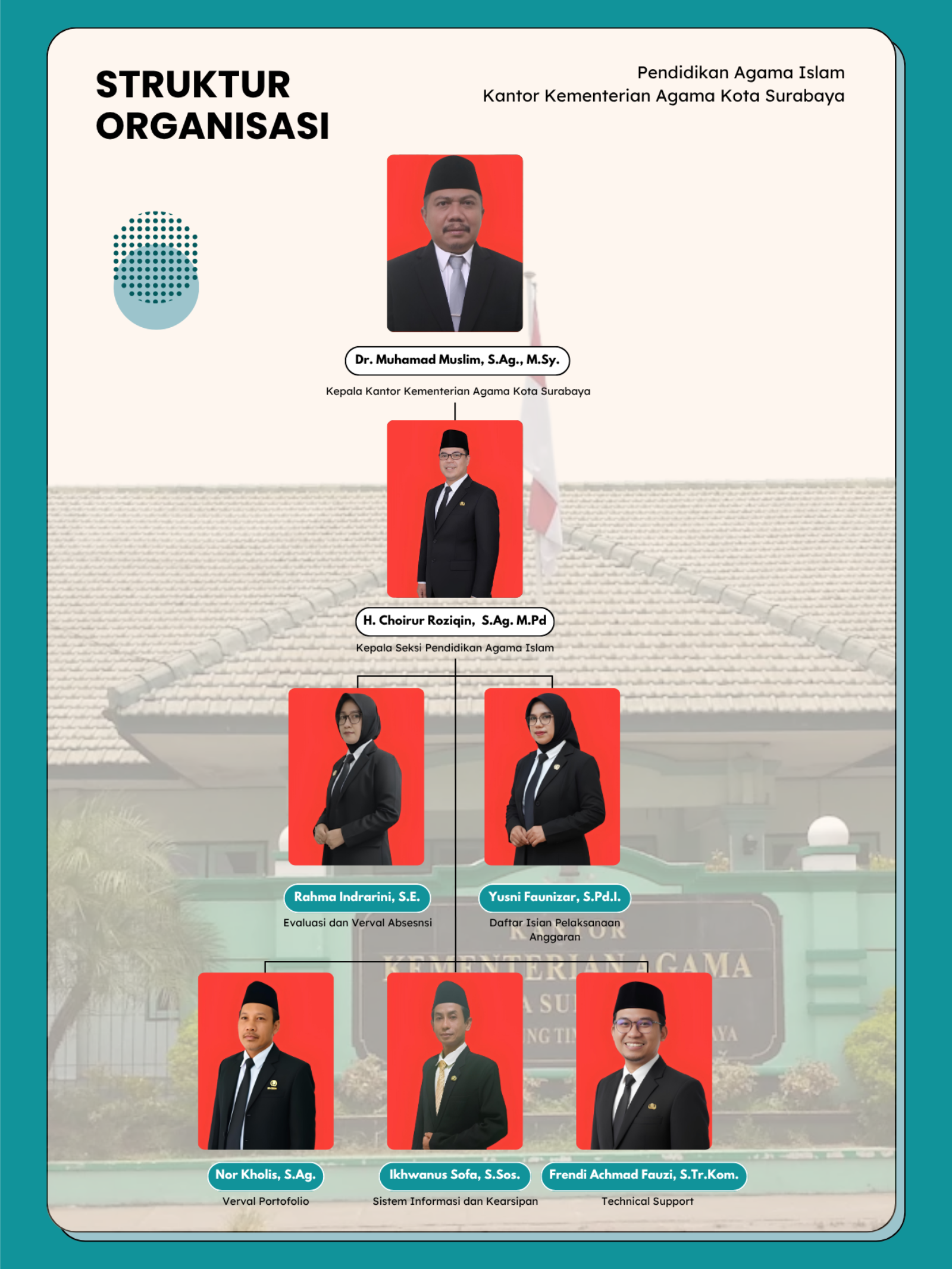 Memimpin dan mengkoordinasikan seluruh kegiatan seksi Pendidikan Agama Islam
